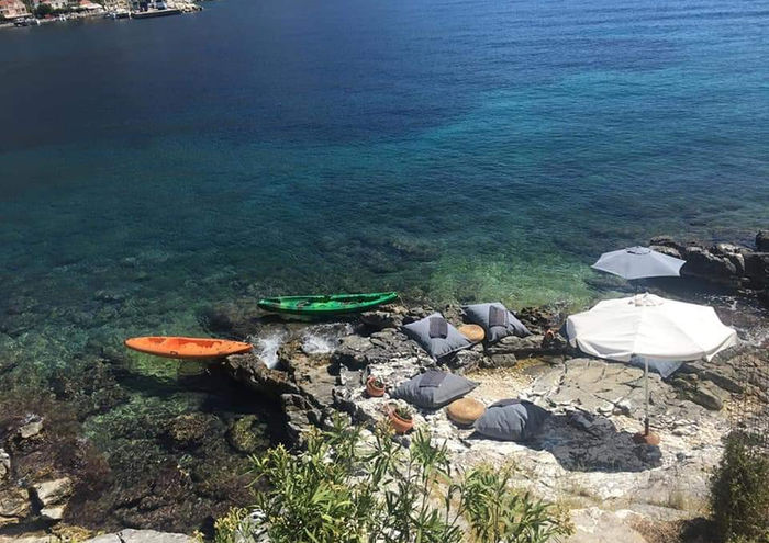 In the evening the atmosphere changes. The sea fills with soft reflections from the boats and from everything that brings light to the shoreline, creating a calm glow that spreads over the water. It is the perfect moment for a glass of wine, with the sound and the scent of the sea accompanying you.